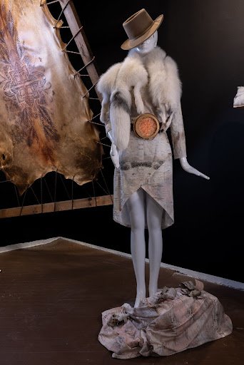 Utilizing contemporary technologies, such as laser etching and digital print, this exhibit transposes bitings from Halfmoons’ permanent and private collection onto traditional materials such as hide, bone, wood and copper. Accented with beads, fur and other materials the exhibit is a fully embodied presentation featuring head to toe looks. The contemporary pieces and fashion designs are displayed alongside Halfmoons extraordinary collection of original bitings.